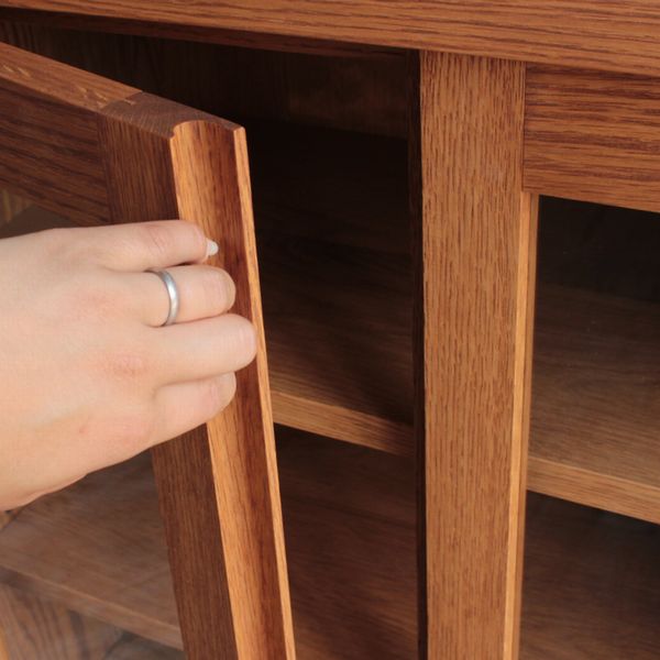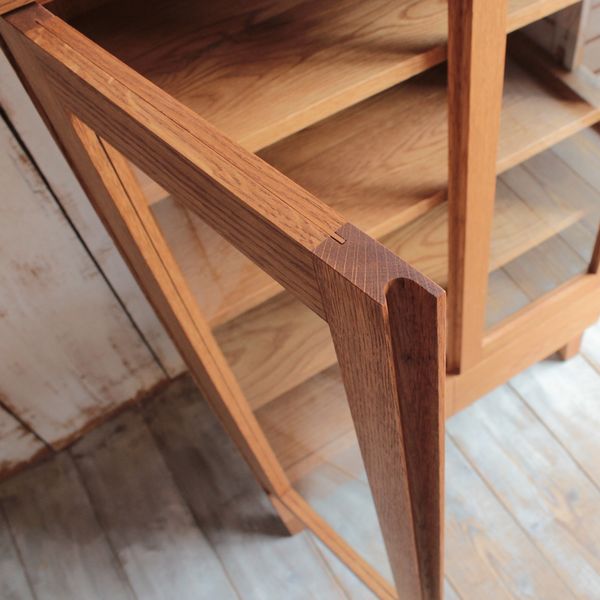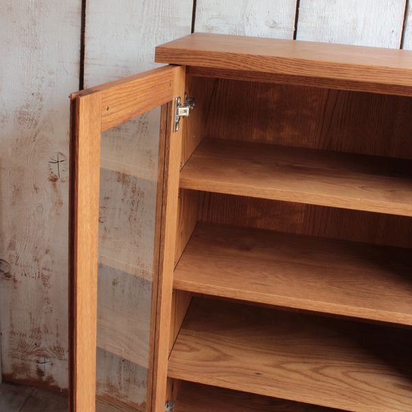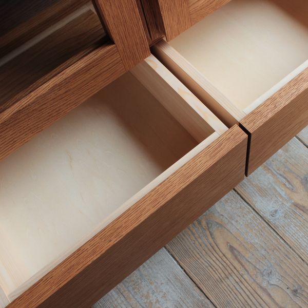 無垢材で制作した高級感のあるキャビネット。 つまみや取っ手を無くし、すっきりとしたデザインに仕上げました。 両開きの扉と、2杯の引き出しで収納力もたっぷりあります。 リビングでリビングボードとして使ったり、キッチンやダイニングで食器棚としても。 樹種やサイズ等の変更も可能(別途お見積もり)ですので、お気軽にお問い合わせください。 |
