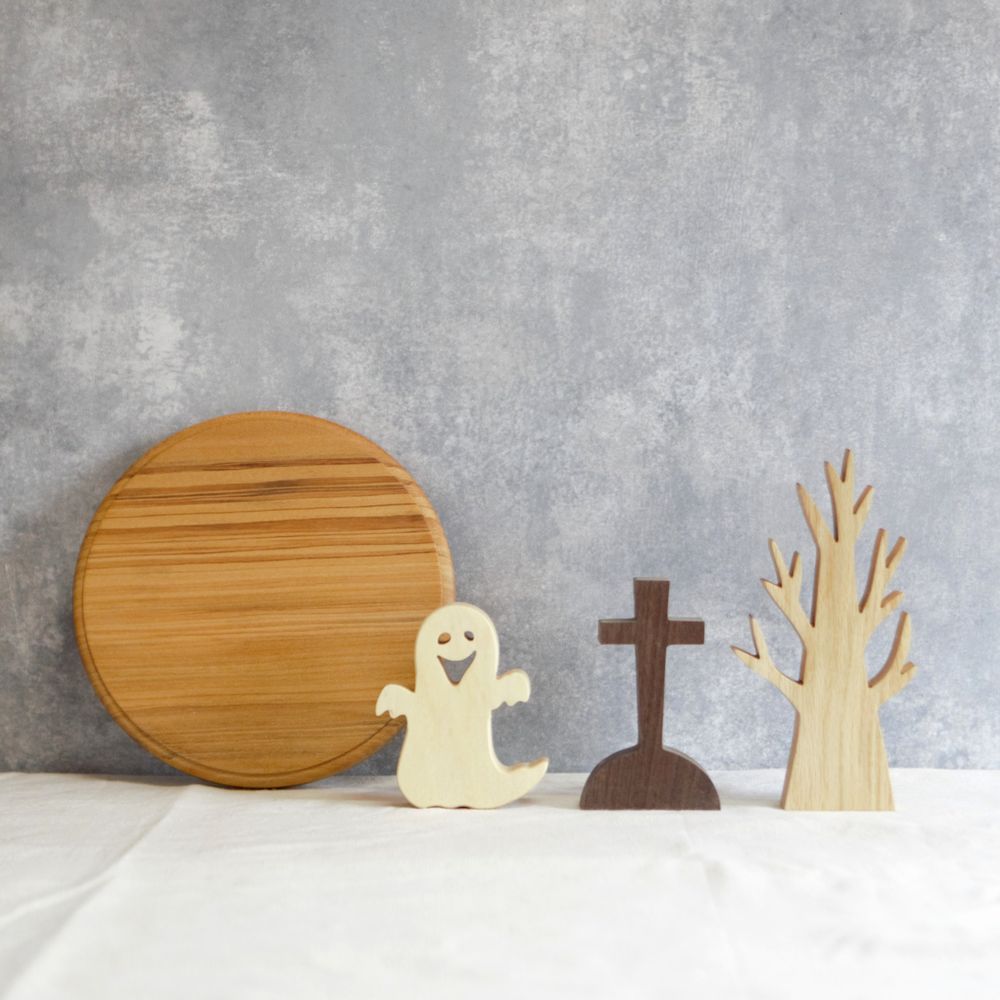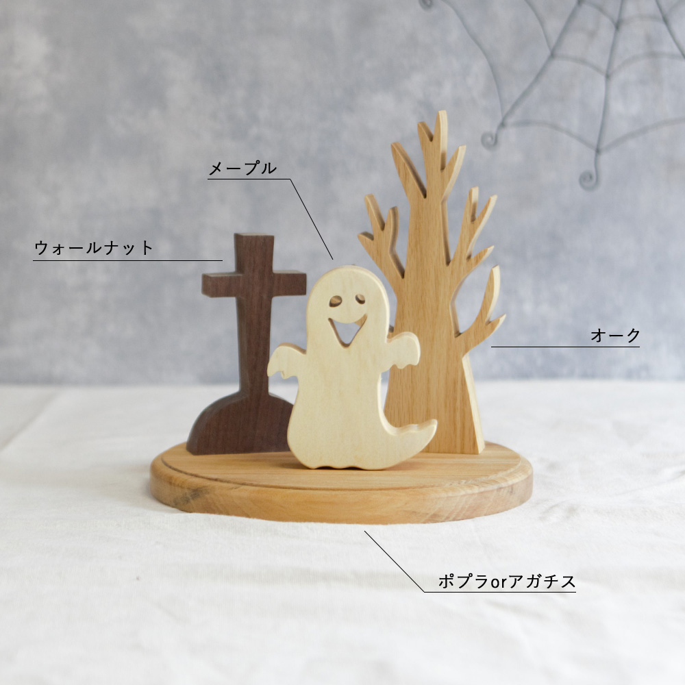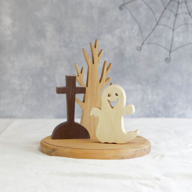 ハロウィンのディスプレイにぴったりな木製オブジェを