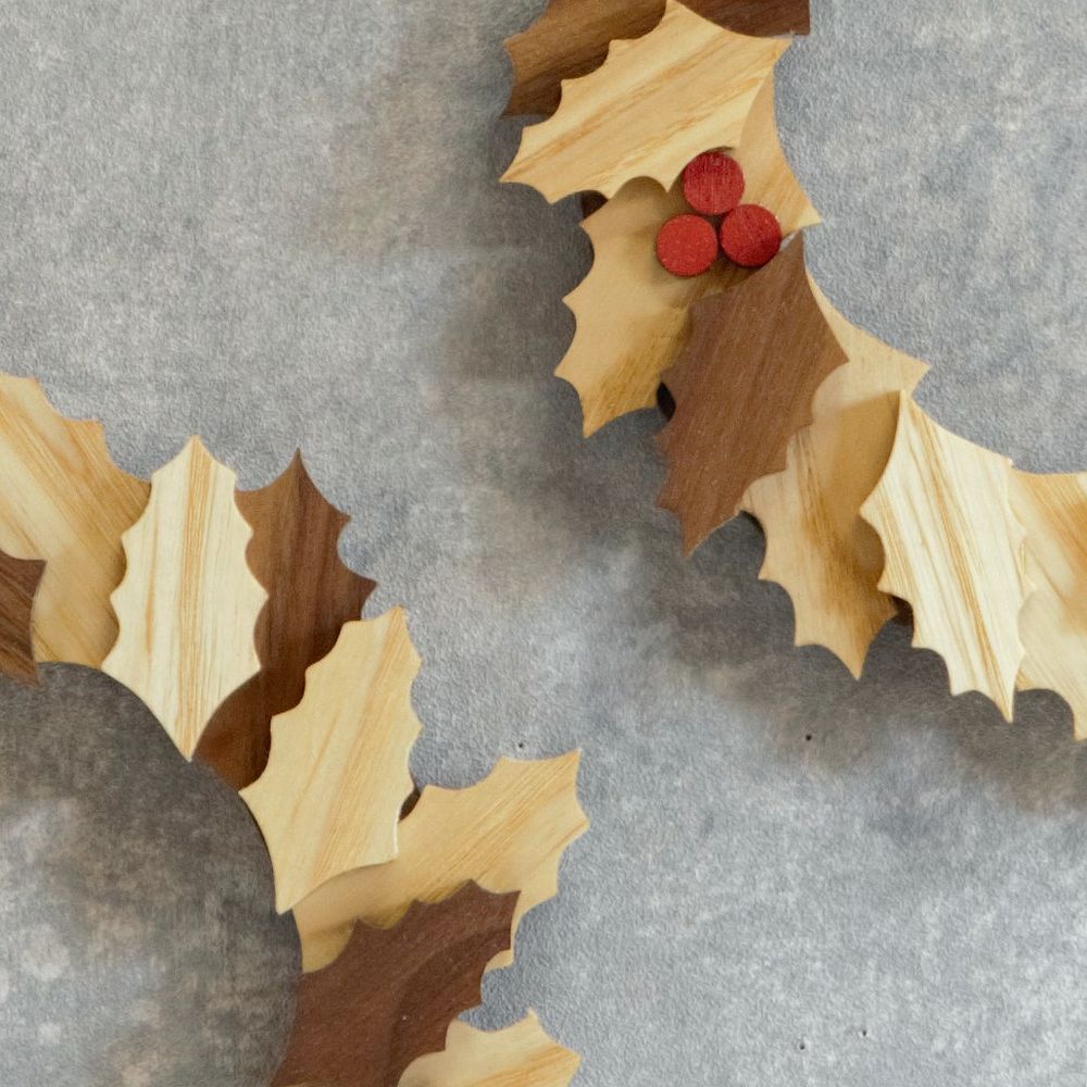 2種類のヒイラギの葉に赤い実がアクセントの