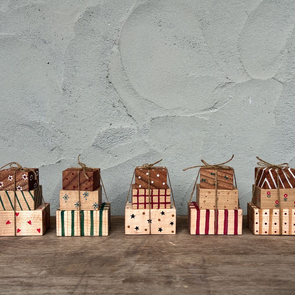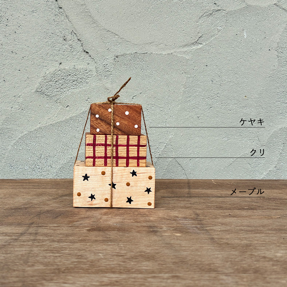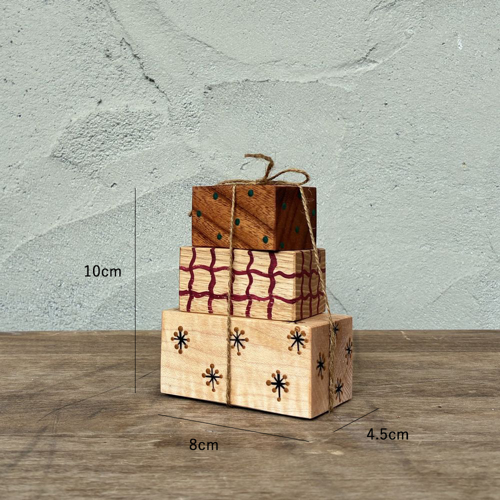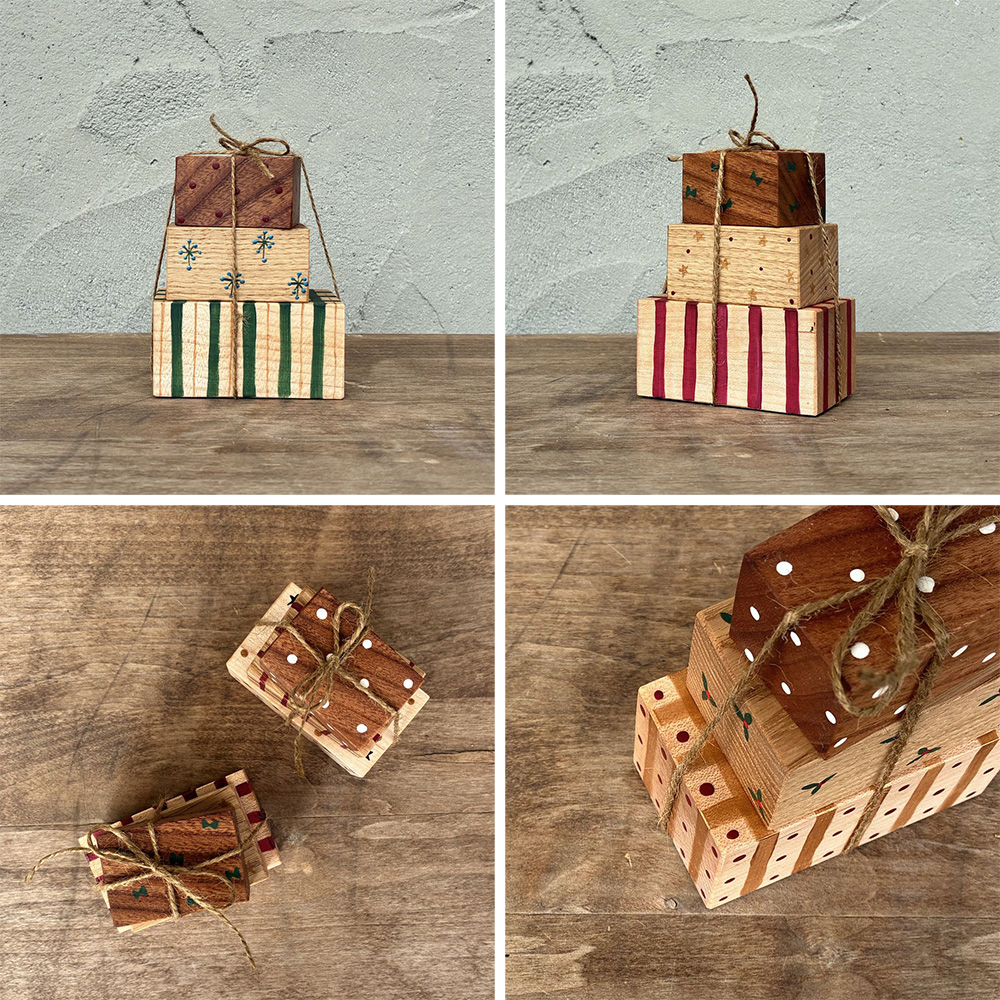 【種類おまかせ】プレゼント 3段オブジェ|クリスマス 置物 インテリア ペイント 手描き christmas ナチュラル
